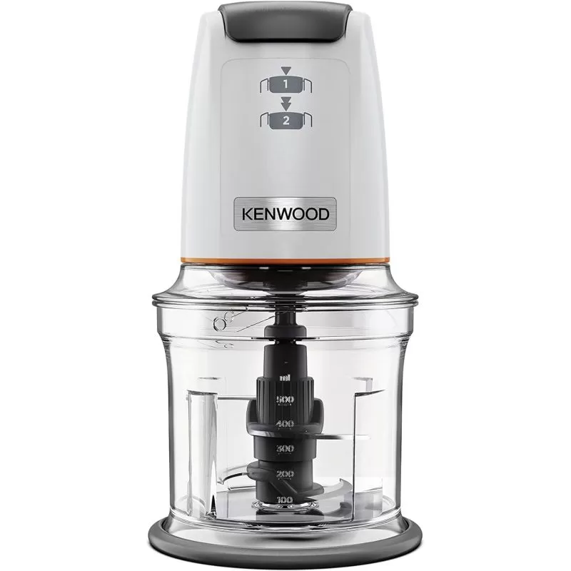 قطاعة طعام كهربائية سعة 500 مل، وسرعتين، وشفرات رباعية من الاستانلس ستيل، وملحق للمايونيز متعدد الاستخدامات، وسباتولا، ووظيفة جرش الثلج 500 وات CHP61.100WH شفاف