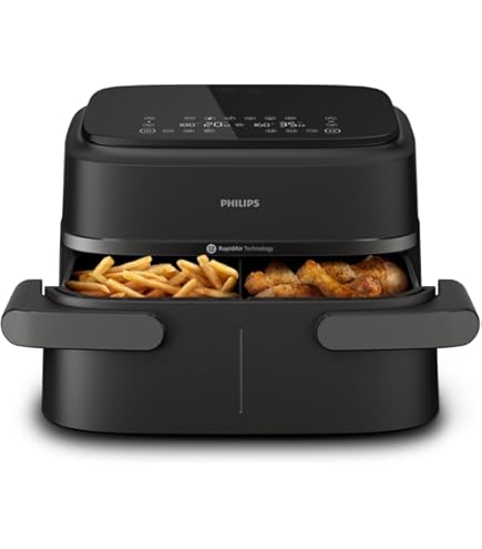 Philips Dual Basket AirFryer 3000 Series – 2750W, 9L Capacity, 2 Basket Drawers, 8 Presets Touchscreen, Black – NA350/00